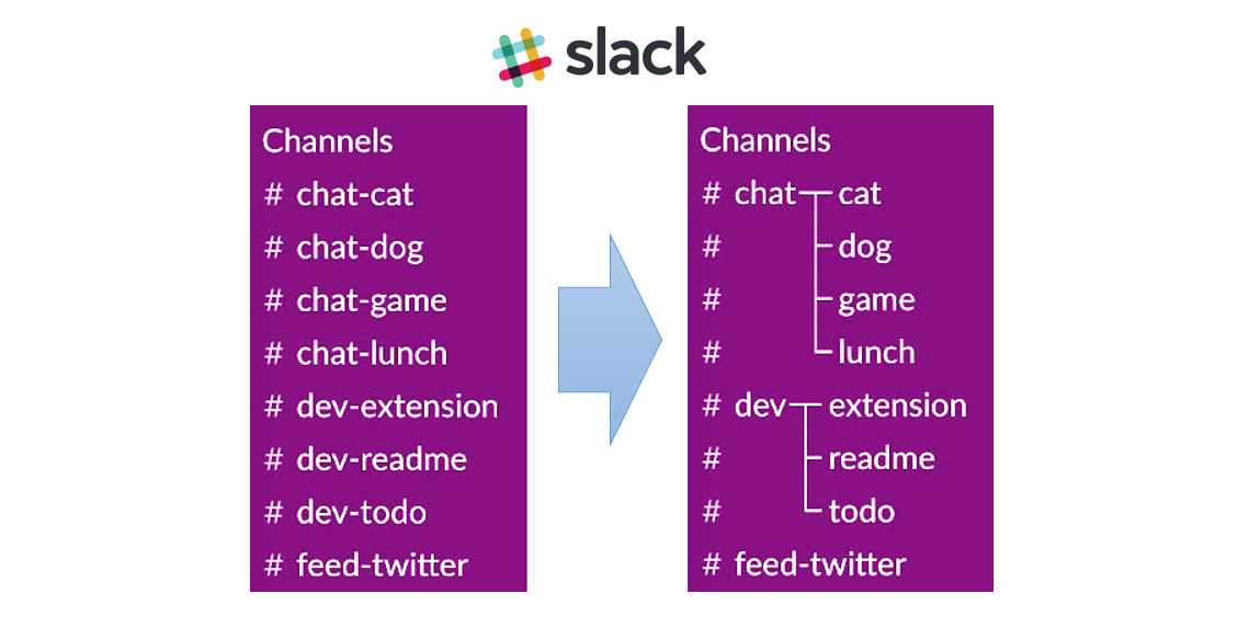 次の拡張機能を利用するとサイドメニュー上のチャンネル名が階層表示になります。