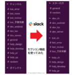 Slackのチャンネルを整理したい 選択肢はいくつかあります。 ・順番に並ぶようにチャンネル名称を工夫する (番号や記号を付けて順番に並ぶように工夫) ・Slackチャンネルの階層表示の拡張機能「Sl ... 続きを見る みなさんの会社では、コミュニケーションツールのSlack(スラック)使ってますか? 私の会社の場合は、かつてチャットワークというツールを使っていたのですが3年ほど前にSlackに乗り替えました。 今で ... 続きを見る